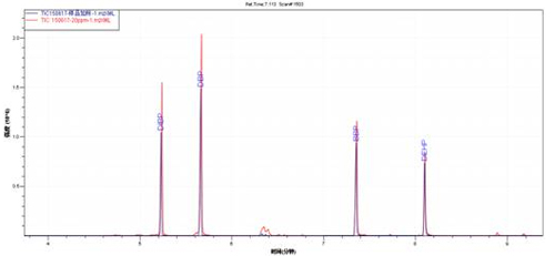合格品加标TIC图(深蓝色)与邻苯混标TIC图(纯白色)