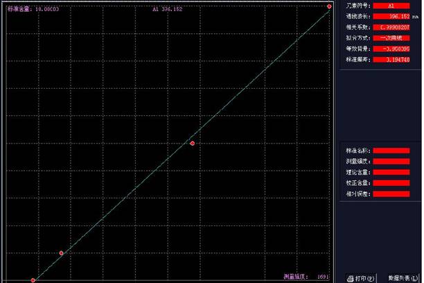 (A道线型方程组:Y=875.144*X-17.003);(A道线型值:0.99916)见图1
