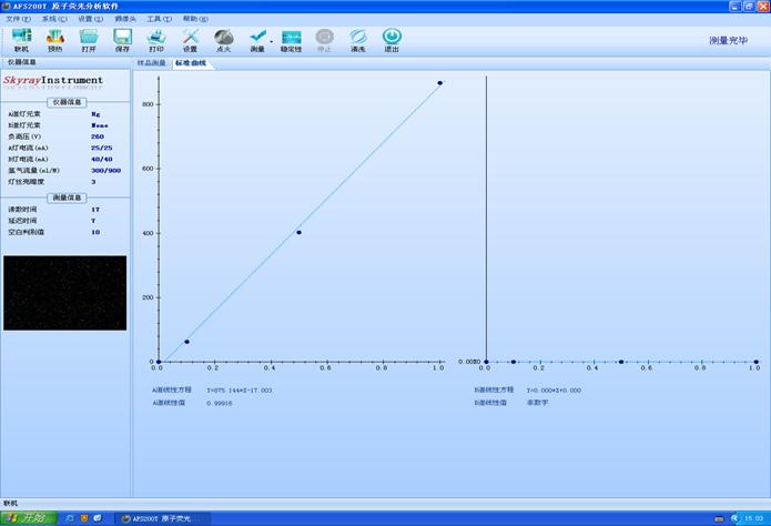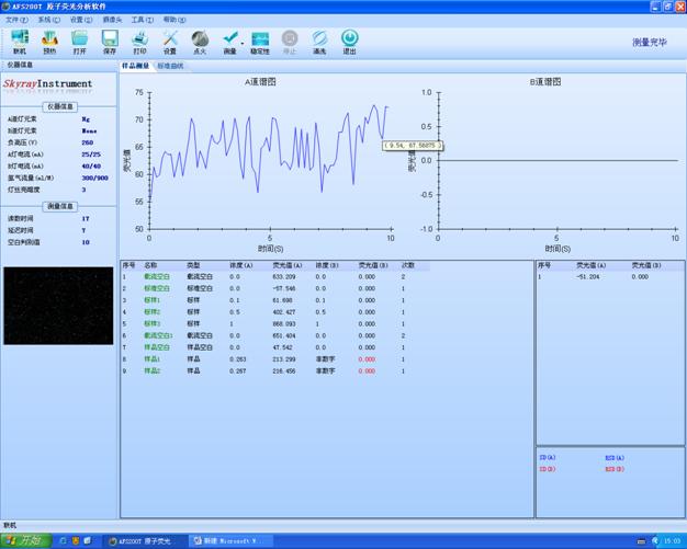 负高压力(V):270;灯直流电(mA):40/40;氩气水流量(ml/M):300/800
