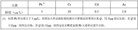 (3)HJ/T 411-2007《事情标记符号有机物手工艺恳求 水嘴》至关重要对镉、铅、铬、砷多种巨资属物质的进行析出量给与上限,上限恳求如表3已知: