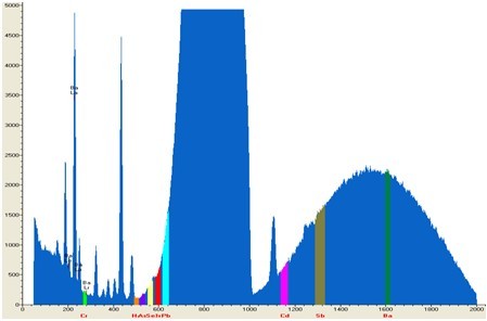 操作EDX 9000C实验室设备对机动车辅件破璃试品制止软件测式,软件测式情况1秒,其软件测式谱图和数据资料之下图: