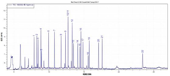 1—α-六(liu)(liu)(liu)(liu)(liu)(liu)六(liu)(liu)(liu)(liu)(liu)(liu)六(liu)(liu)(liu)(liu)(liu)(liu);2—β-六(liu)(liu)(liu)(liu)(liu)(liu)六(liu)(liu)(liu)(liu)(liu)(liu)六(liu)(liu)(liu)(liu)(liu)(liu);3—γ -六(liu)(liu)(liu)(liu)(liu)(liu)六(liu)(liu)(liu)(liu)(liu)(liu)六(liu)(liu)(liu)(liu)(liu)(liu);4—蒽(en)-D10(内(nei)标);5—δ-六(liu)(liu)(liu)(liu)(liu)(liu)六(liu)(liu)(liu)(liu)(liu)(liu)六(liu)(liu♔)(liu)(liu)(liu)(liu);6—七(qi)氯(lv);7—艾氏剂;8—环氧七(qi)氯(lv) B;9—γ-氯(lv)丹(dan);;10—硫丹(dan) I;11—α-氯(lv)丹(dan);12—4,4'🍸-DDE;13—狄(di)(di)氏剂; 14—异狄(di)(di)氏剂;15—硫丹(dan) II;16—4,4'- DDD; 17—异狄(di)(di)氏醛(quan);18—硫丹(dan)硫酸酯;19— 4,4'-DDT;20—异狄(di)(di)氏酮; 21—甲氧 DDT;22—苝-D12(采样替换(huan)物(wu))